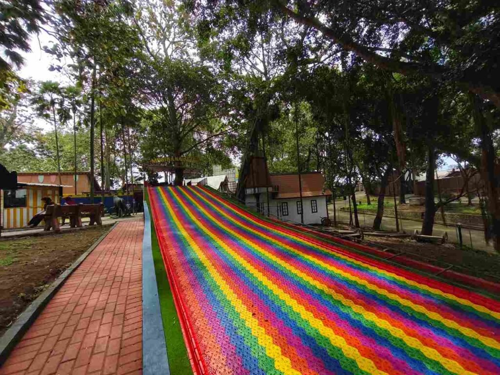 Rainbow Slide yang menjadi salah satu atraksi favorit di New Wisata Wendit Malang. Dengan lintasan panjang berwarna-warni yang mencolok, wahana ini menghadirkan sensasi meluncur seru sekaligus memacu adrenalin, baik untuk anak-anak maupun orang dewasa.