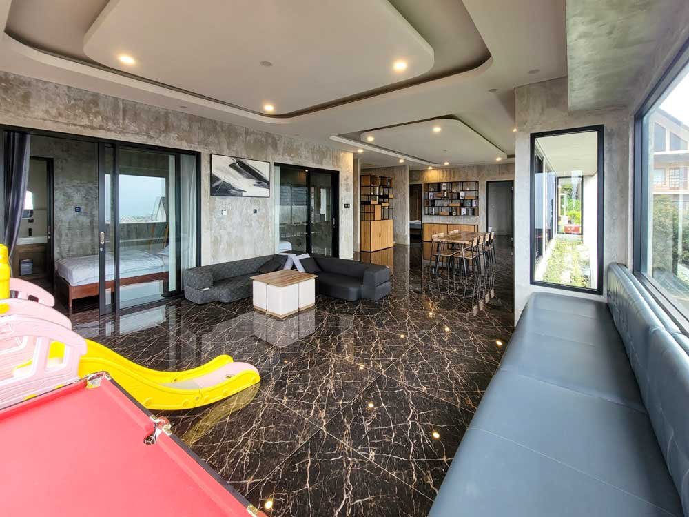 Kalau kamu ingin pengalaman liburan ala “sultan”, Mr Suite Villa wajib banget masuk wishlist. Villa ini punya 6 kamar tidur dengan kasur King Koil, bathtub, dan private pool yang dikelilingi taman hijau. Fasilitasnya luar biasa lengkap—mulai dari karaoke, PS5, ultra luxury massage chair, playground, mini Dino Park, sampai lapangan basket dan badminton. Menariknya lagi, jaringan WiFi-nya pakai Starlink, jadi koneksinya stabil bahkan di area pegunungan. Dengan kapasitas besar, parkiran untuk delapan mobil, dan security 24 jam, Mr Suite cocok untuk keluarga besar atau gathering perusahaan.